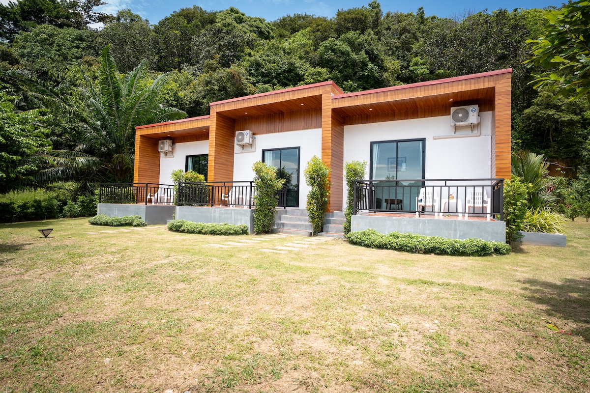 Remote work ready with a desk, fibre Wi-Fi 600×600 Mbps, 2 silent A/Cs, smart TV, private teak terrace, and a kitchenette with induction hob. Quiet, modern, minimalist, nature-close. Walk to Khlong Chak Beach in under 10 minutes; scooter/taxi recommended for exploring. This booking is for Unit B (middle) at Cascade Hills Bungalows.