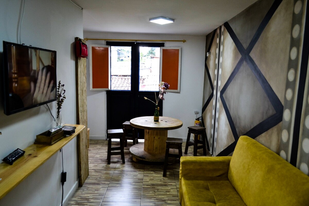Cozy cabin-type apartment, ideal space for rest, it has a double-full bed and a single bed, with large windows and a perfect balcony to observe the mountain and the landscape that can be seen from there, also the birds that perch there, totally private and independent, it has a bathroom and shower with hot water, a kitchen equipped to prepare food, its strategic location just 450 meters from the main square and the Williz that lead to the Cocora Valley.