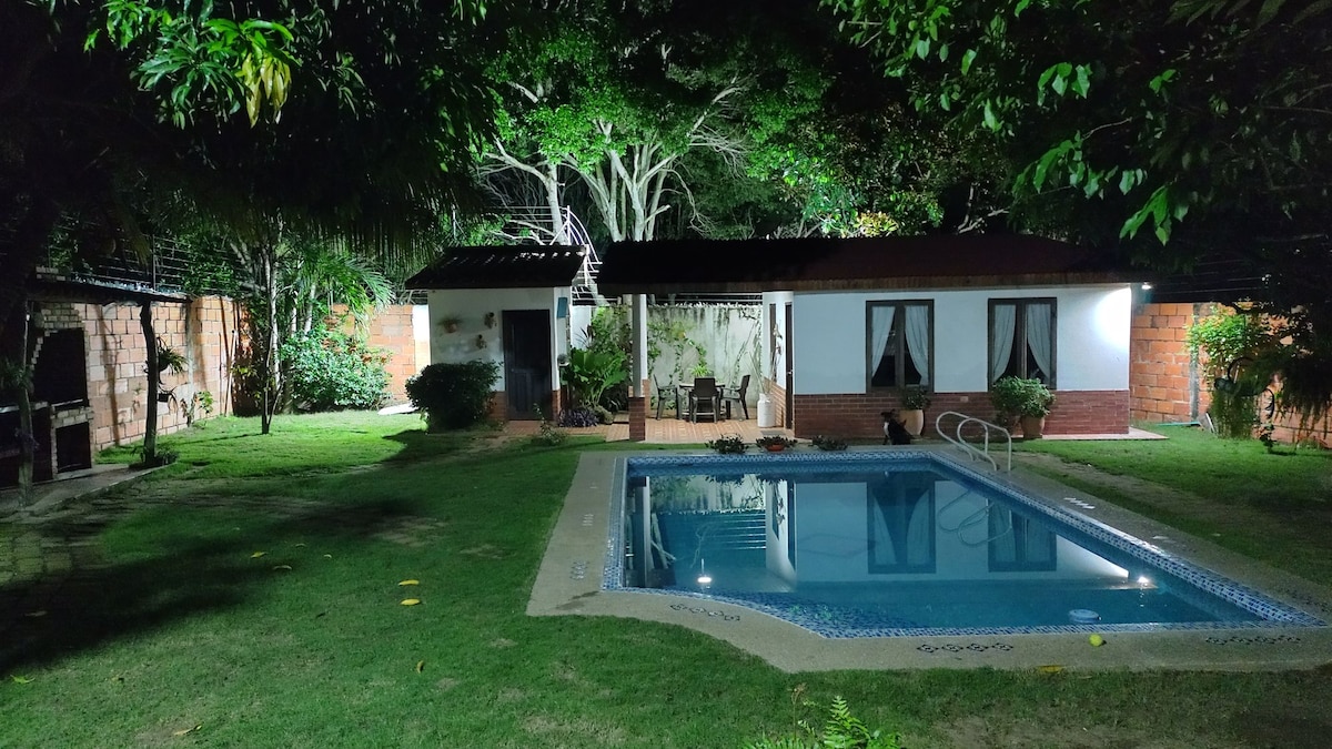 Escape to a villa with a private pool, a haven surrounded by nature and comfort. Enjoy a unique experience in its loft-like atmosphere, with a king-size bed, bathroom with views of the sky, and outdoor shower under the stars. Enjoy its Mediterranean cuisine, ideal for sharing special moments. The courtyard with vegetation and warm lighting creates a magical atmosphere for relaxation, just 25 minutes from Barranquilla.