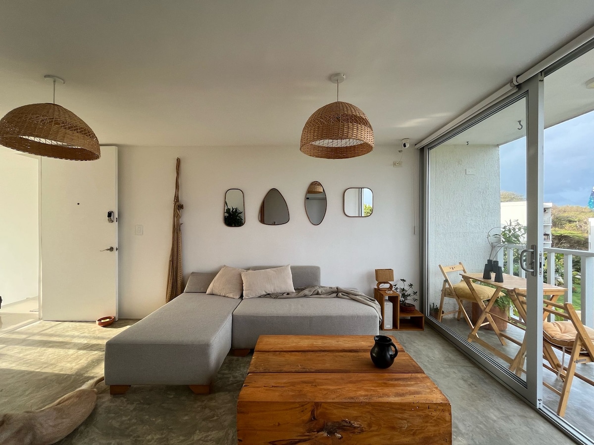 Surf, and relax in this one of the kind calm, stylish Coastal Suite with view of the hills in the back and ocean views in the front. Start your day with morning sun that arises from the back hills. Enjoy a cup of Colombian coffee on the balcony overlooking Puerto Colombia's main surf break. Enjoy the community pool while meeting your fellow surfers. Finish the evening with a sunset sesh and wind down overlooking the orange sunsets or a light shows by the new lighthouse - Faro de Puerto Colombia