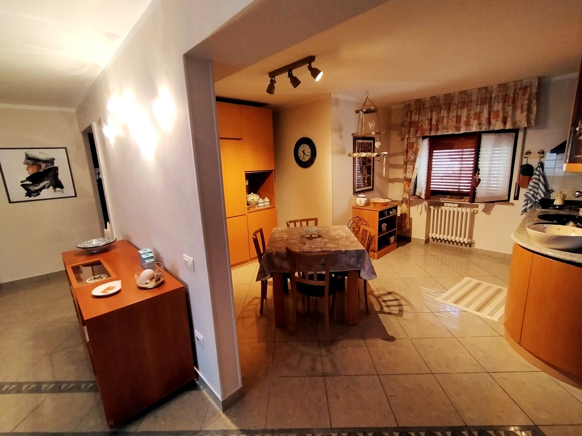 Green House is an elegant flat ideal for: • Families with children looking for comfort • Couples seeking a romantic getaway • Those who want to relax by the sea Located on the 5th floor with lift in the refined Aires complex, a residential area with a garden just 100 metres from the most beautiful beaches in Montesilvano. From the spacious terrace, you can enjoy a splendid 240-degree view and relax while watching the sunset.