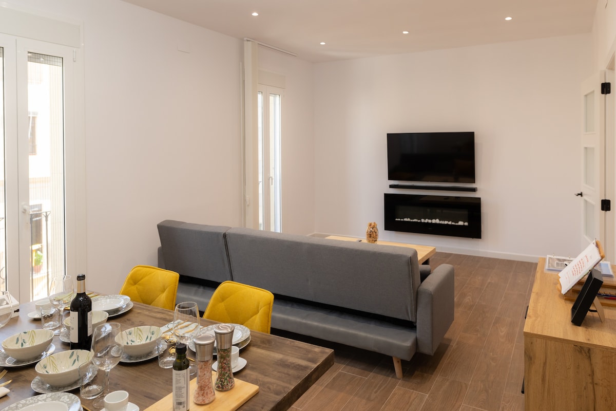 You will discover the best area of Tarragona from the first step as you will be staying 200 meters from the Amphitheater and the Cathedral. Double-glazed windows with soundproofing ensure a good night's sleep. The master bedroom and living room have mini balconies. The kitchen is fully stocked. Coffee and tea are also available. Also sugar, spices, filtered water... The elegant terrace with barbecue on the upper level allows you to enjoy the outdoors.