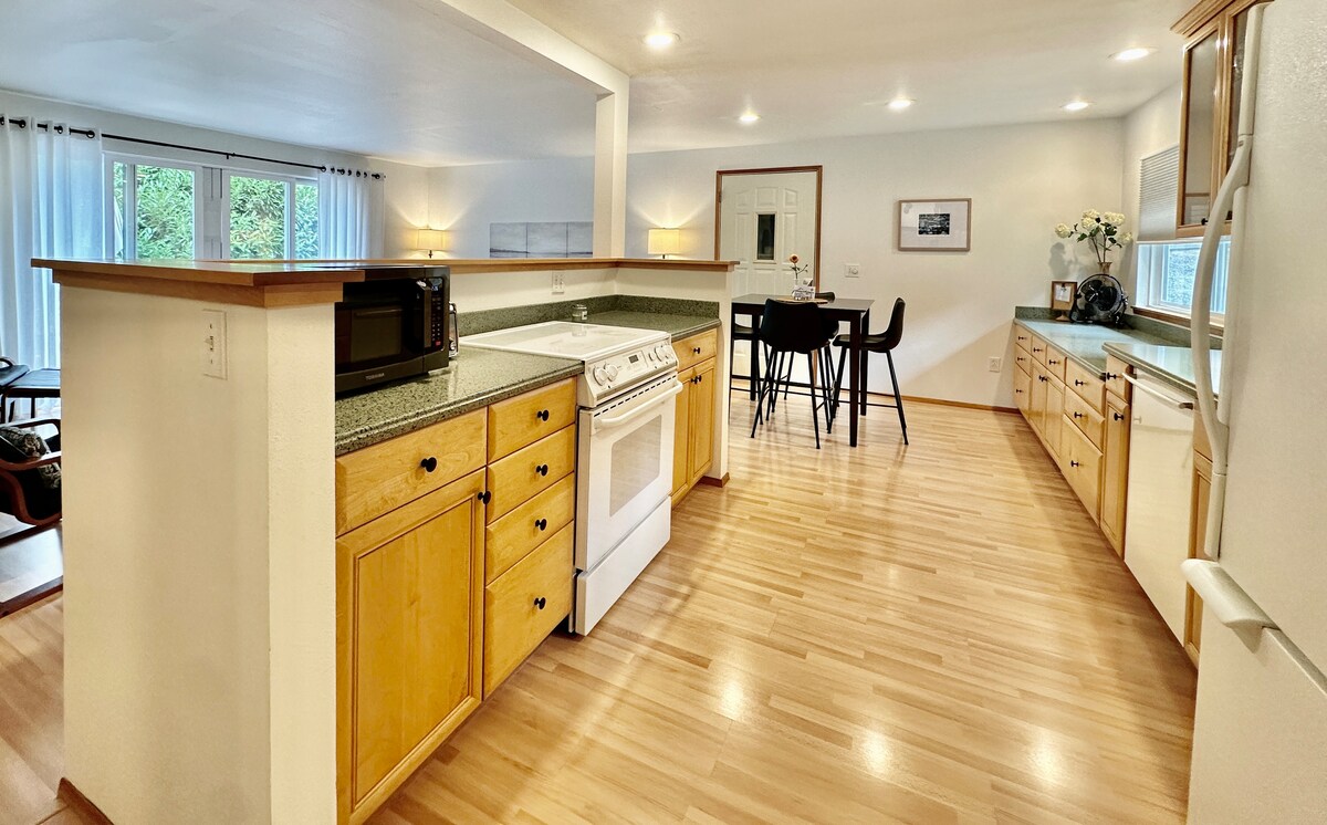 Modern farmhouse cottage on Lake Sammamish—2 bed / 2 bath with A/C and gas fireplace. Both bedrooms feature plush down comforters and pillows. Enjoy hardwood floors, a well-equipped kitchen with new appliances, washer/dryer, dining for 6, a sleeper sofa, 55” TV, and coffee bar. Relax with lakeview dining, kayak the shoreline, or explore the Lake Sammamish Trail just outside your door. Well-behaved dogs welcome!