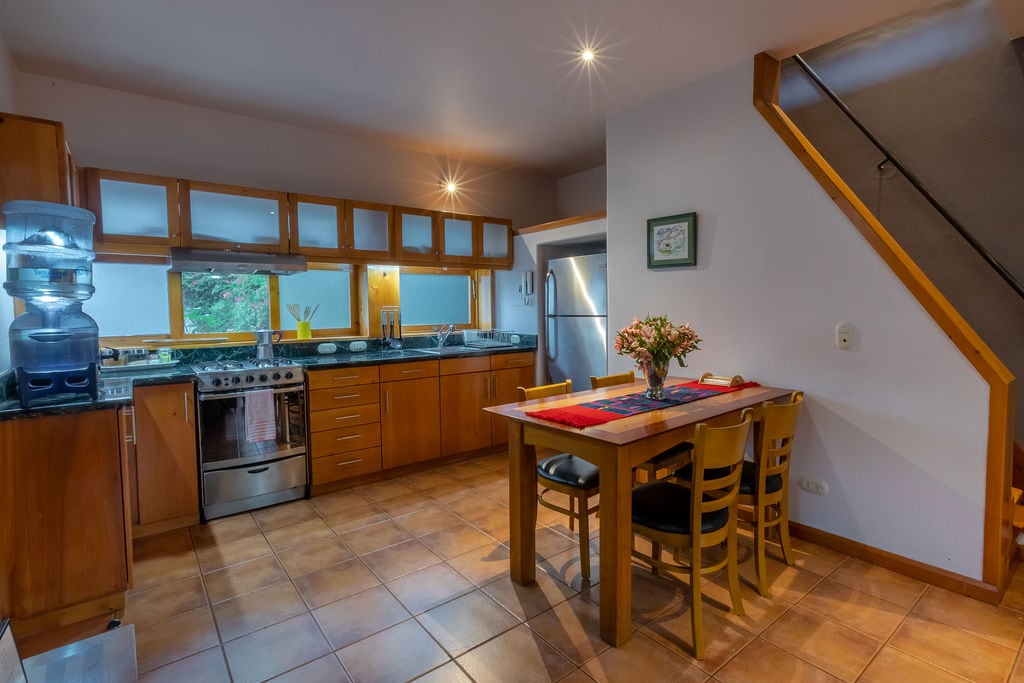 El Níspero II is a 2-story apartment located in the same cabin, which contains two apartments. This property is located in downtown Panajachel. The cabin is at the foot of a mountain and is surrounded by a forest which fosters an atmosphere of peace, comfort and nature. The apartment on the first level has an equipped kitchen and dining area, and on the second level is the bedroom and private bathroom. All areas are private!