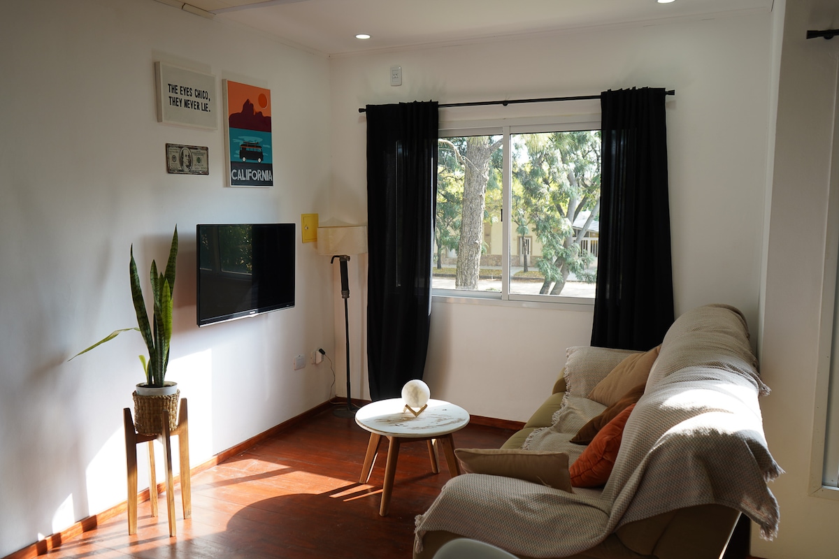 This unique place has its own style, it has everything to make your stay the best!! With a very comfortable garage, it is close to all the sanatoriums, two blocks from the pedestrian street, three from the beautiful bv Galvez where you can find a variety of restaurants and craft beer pub, three blocks from the bus terminal. Wifi,TV in dining room and bedroom,beautiful balcony flat 12 beautiful view,2 air conditioning/boiler. Not suitable for babies