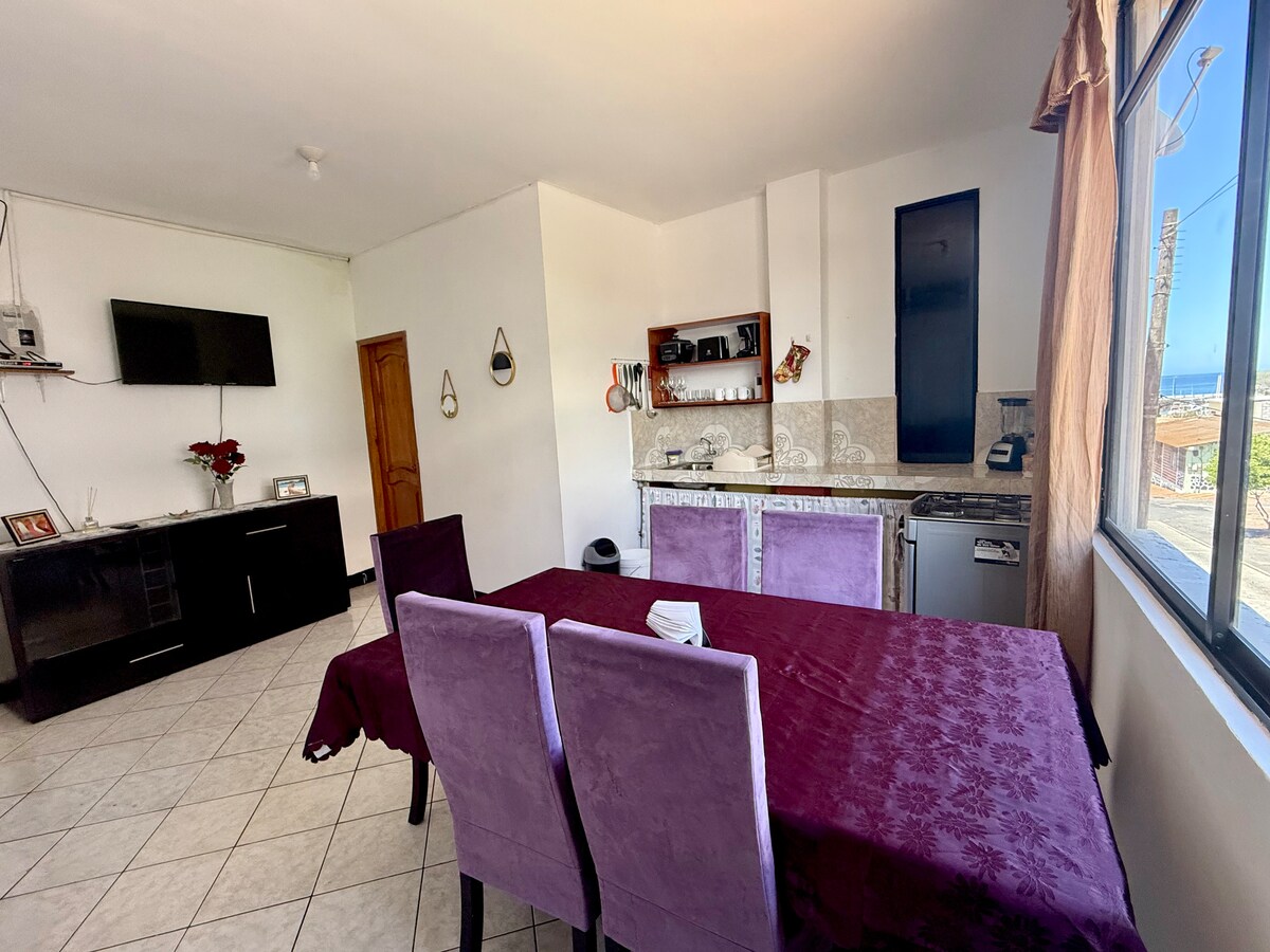 Spacious and comfortable apartment on the second floor, located in the center of San Cristóbal, just two blocks from the waterfront. Perfect for solo travelers, couples, or short families. Close to restaurants, bakeries, and pharmacies, with all essentials for a practical and pleasant stay.