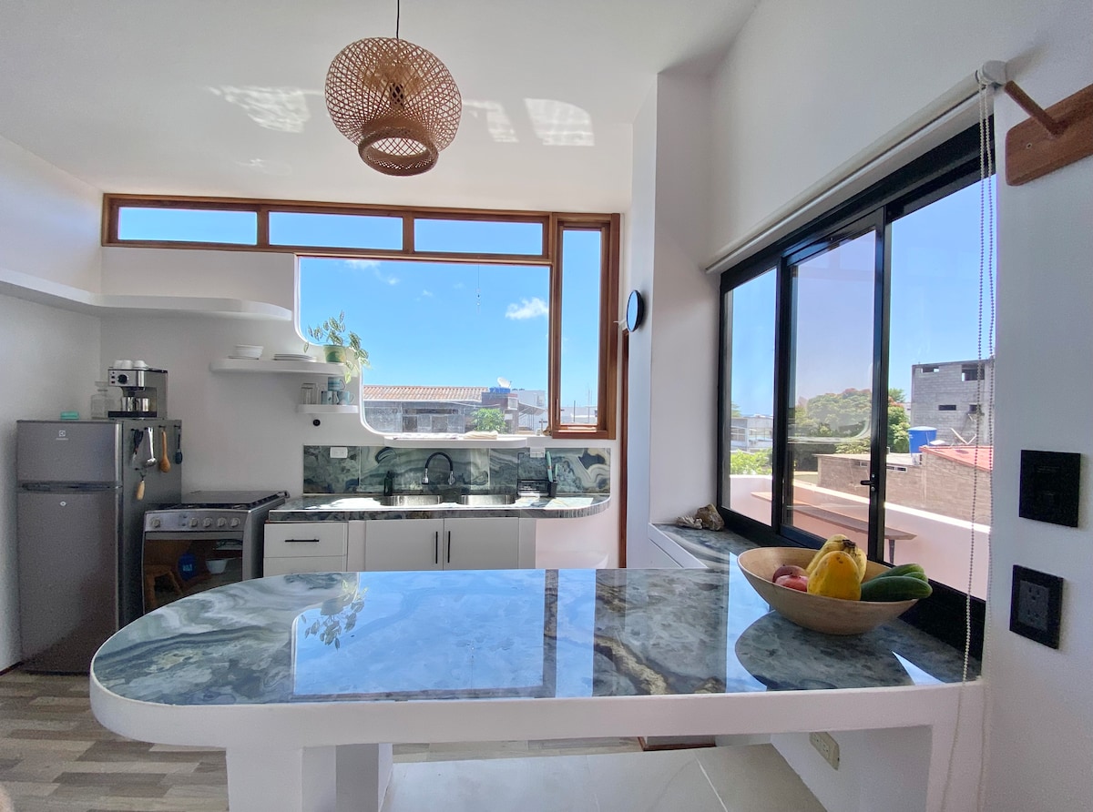 Located in the heart of San Cristóbal, this ocean-view suite is ideal for couples or up to 4 people looking for a special experience. A few steps from the pier and the esplanade, it offers immediate access to restaurants, cafes, banks and ATMs. Enjoy unforgettable sunsets and bright mornings from a comfortable and cozy space, perfect for relaxing and experiencing the essence of the port in total comfort.