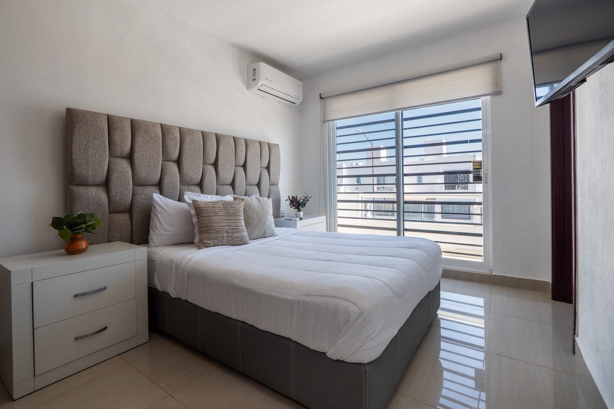 💵 Facturación Disponible 💵 🌿 Refugio con estilo🌿 🛏️ 3 Recámaras | 3 Baños Completos. ⭐Recámara principal Cama King Size ❄️A/C❄️baño privado TV ✨Segunda recámara Dos camas individuales y baño privado 🌙Recámara en planta baja Cama matrimonial 👶 Cuna disponible bajo solicitud 🍴 Cocina: Totalmente equipada para tu comodidad 🎥 Sala de TV: Con acceso a streaming 🌿 Patio Trasero: Tranquilo y acogedor para disfrutar Amenidades 🏊 Alberca 💻 Área Cowork 🎠 Área de juegos para niños