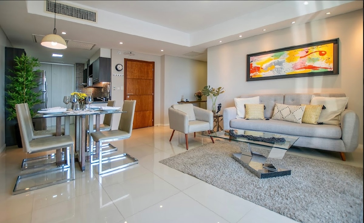 Stay in the best area of Asunción, just steps from Paseo La Galería and Shopping del Sol. This 15th-floor luxury apartment offers panoramic views, a cooled queen bed, 65" NeoQLED TV with sound system, and a fully equipped kitchen ideal for long stays. Enjoy access to spa with sauna, Jacuzzi, massage room, rooftop pool, gym, co-working, reading lounge, playroom, BBQ area, valet parking, and 24/7 security in a premium high-rise.