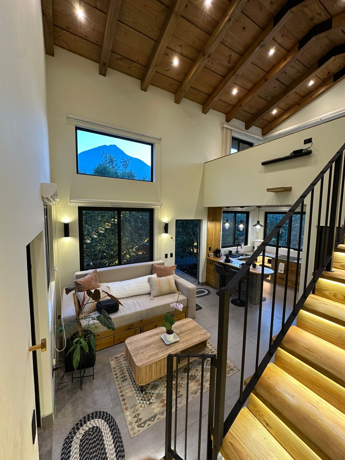Adults only Vulkana Apartment – Design & Stunning Fuego Volcano View Two-story apartment in the luxurious Vulkana Resort near Antigua. Enjoy modern jungle design, with living room, kitchen & bathroom downstairs, and a bedroom upstairs with breathtaking volcano view. Access to resort areas included. Perfect for couples or travelers seeking peace, style & nature. 24/7 security, Wi-Fi & parking included.