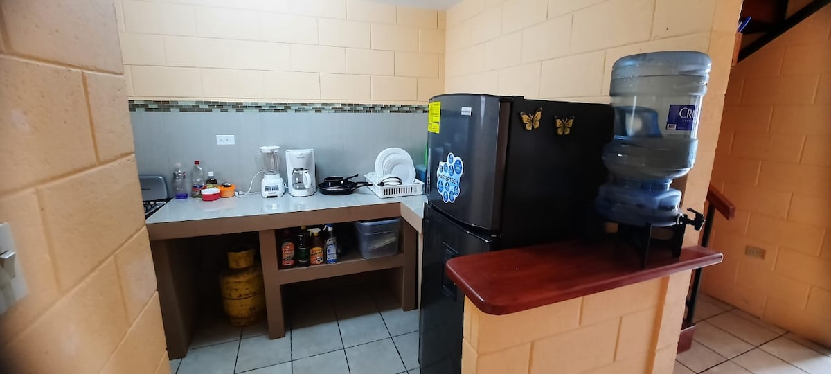 Descubre la comodidad de hospedarte en este alojamiento moderno, amplio y lleno de luz natural, ideal para familias,es una acogedora vivienda en SOYAPANGO equipada con todo lo que necesitas para sentirte como en tu hogar . Patio verde/aire acondicionado en casa completa /2 baños ✔️NO hay agua caliente /Cocina equipada con sal , aceite platos ,vasos ,tazas,copas , sartenes,cafetera, tetera ,café -té. licuadora ,grill, tostadora / lavadora y secadora ,jabón para lavar la ropa ,plancha, cisterna