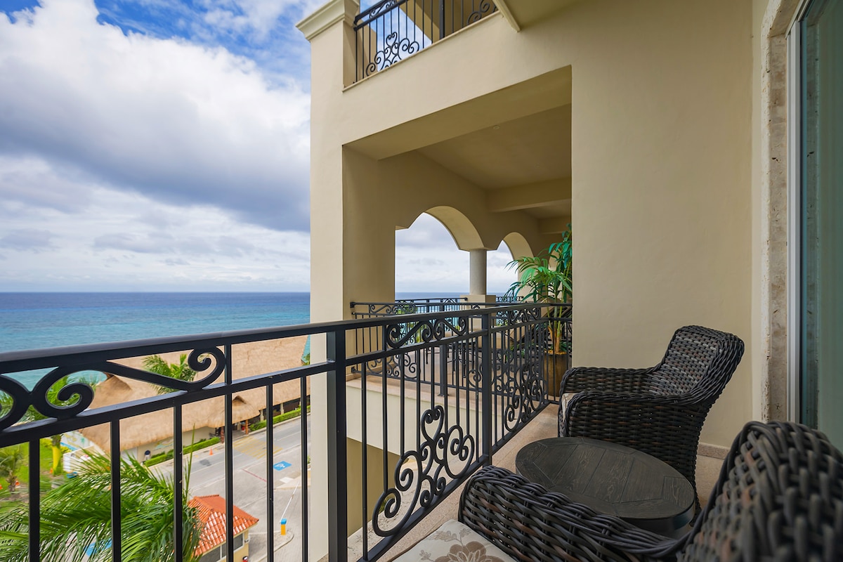 From your private veranda, watch stunning sunsets where the blue water and pink and orange sky meet to create a true piece of art. This 3 bedroom 3.5 bath villa has views from every room. The sparkling blue waters are calming and beautiful. Cozumel is a divers paradise. Nestled up on the 5th floor, you can see the island from above. Enjoy the sounds of the ocean waters hitting the beach, the singing of the Swallows and other native birds and watching the boats go by will ease any stress.