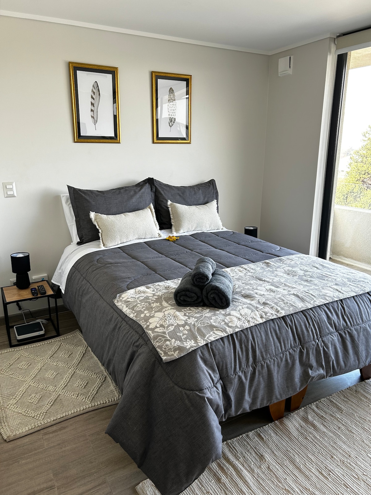 Te invitamos a disfrutar de la calidez y confort de nuestro alojamiento, el cual se encuentra cómodamente acondicionado para dos personas, a pasos de avenidas con relevancia comercial, supermercados, clínicas, lugares de esparcimiento , estadio, parques y plazas. Disponemos del siguiente equipamiento: Electrodomésticos y elementos de cocina básicos esenciales, Dormitorio totalmente equipado, toallas y otros. Ideal para Home Office. ¡Ven a disfrutar, te esperamos!