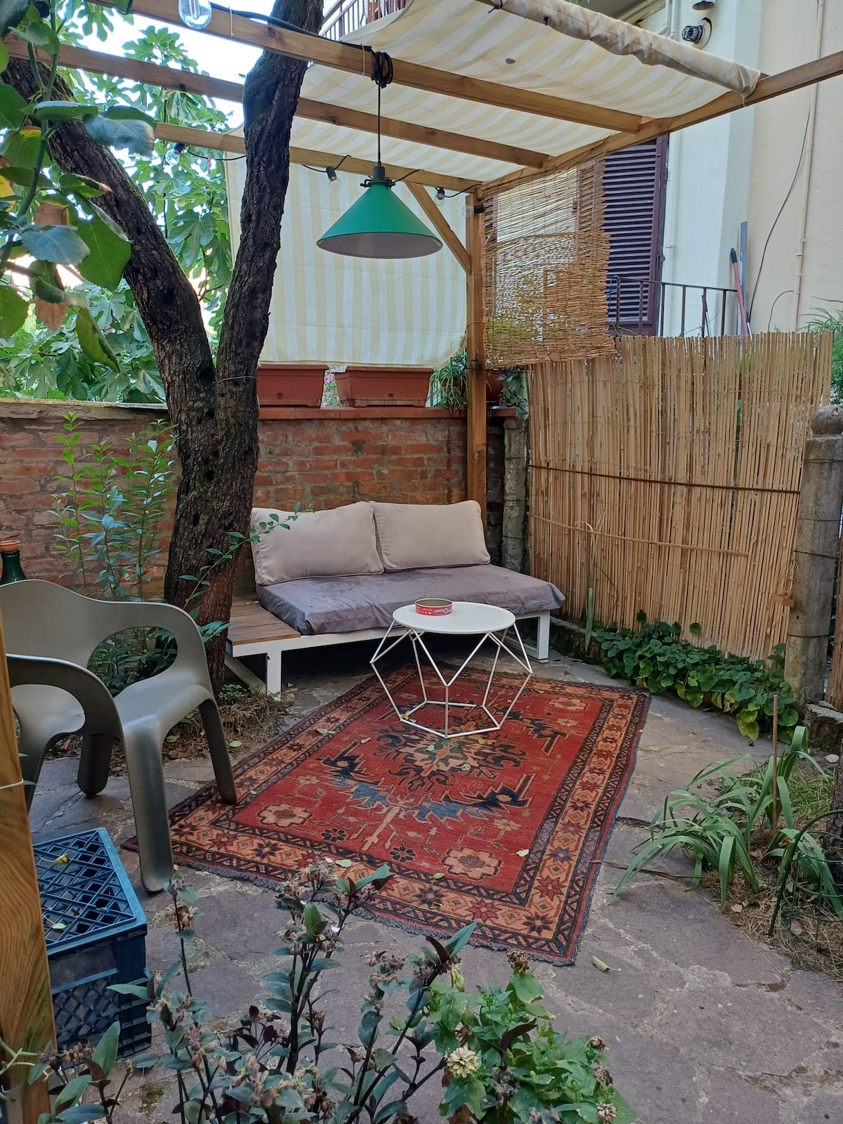 This room is part of our house, but autonomous due to its independent entrance. It is a studio apartment equipped with every comfort: a practical, generously sized foldaway bed (160x200) with an adjoining sofa, a small kitchen ideal for a coffee, tea or a cold drink, a bathroom and a wardrobe. Fast wifi, Smart TV, Air conditioning, Nespresso are available. Alcova has a small but comfortable garden, where you can relax after a day in the city or its surroundings.