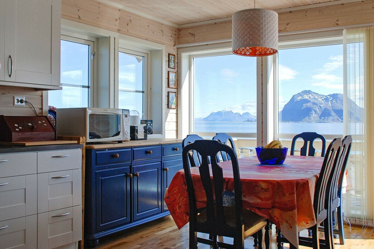 Relax with the whole family at this peaceful residence. Rorbuen is located on the mainland in a quiet rowing area, with immediate proximity to great hiking areas. You can fish or swim from the floating docks, or go hiking in the mountains. It is possible to rent a boat in the area if you wish. Simple standard inside with 2 double beds and a 120 cm bed. Balcony on the 2nd floor, right out from the living room/kitchen. Large terrace on the 1st floor, on the jetty.