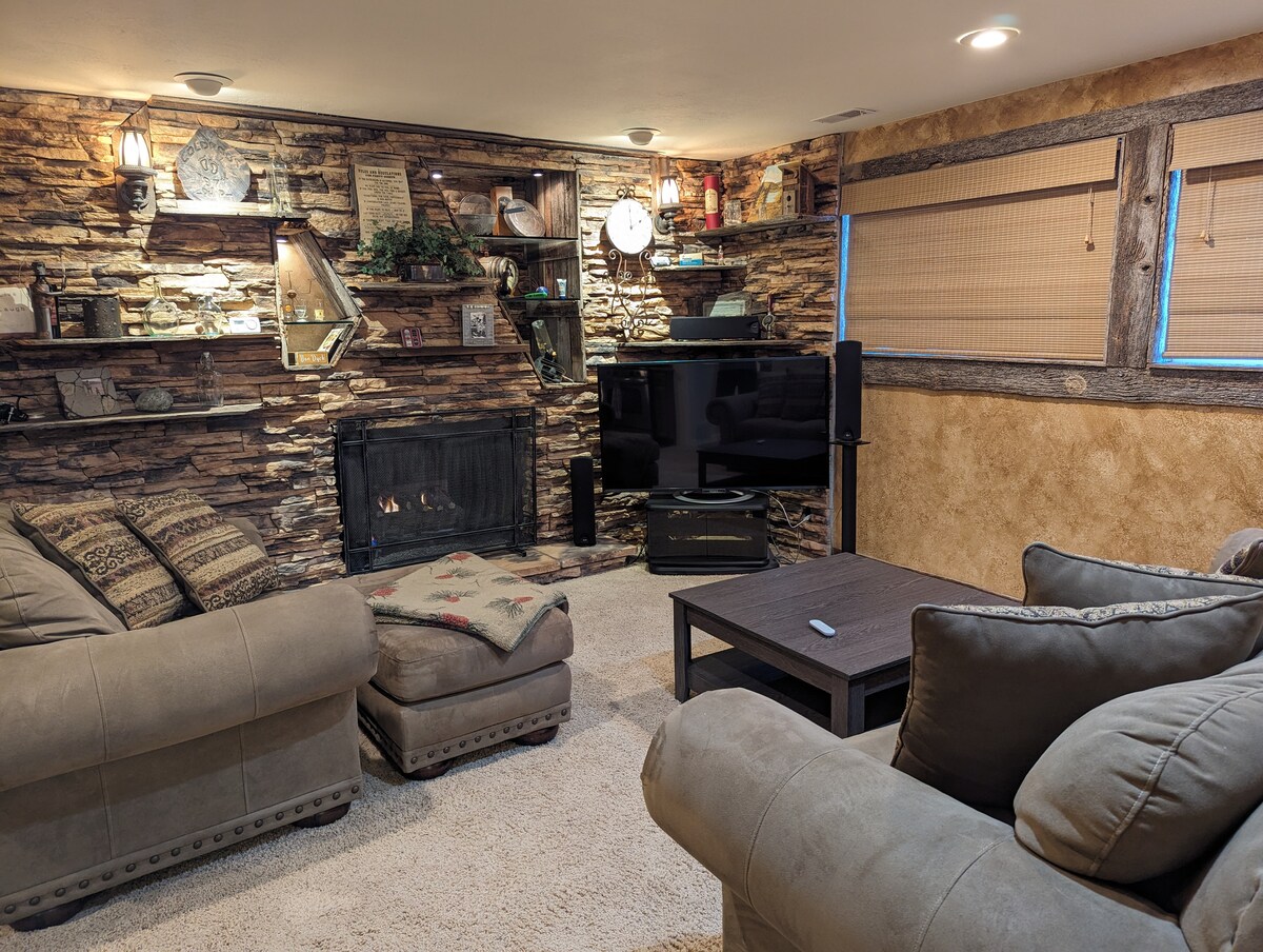 Unwind at this spacious 1,200+ sq. ft, cozy, cabin-like retreat minutes from world-class skiing and hiking. Less than 10 minutes from Little and Big Cottonwood Canyons, this is your perfect home base. Enjoy a new full kitchen, warm gas fireplace, large smart TV, super-fast Wi-Fi, desk, plush king, queen and full beds, luxury linens, washer/dryer, and large backyard. Private entry and off-street parking. Living rm. has a 4K HDR TV w/ most smart TV features, Roku, Amazon, YouTube, Netflix, etc.