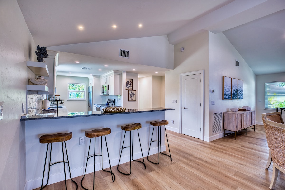 Experience the nicest remodeled & decorated coastal 1-bedroom 2-bathroom villa on Captiva! Designed for ultimate relaxation with great bayside water views, all within the South Seas gated community. The villa has a spacious bedroom with a luxurious king bed, living room with a pull-out sleeper sofa, to accommodate guests. Enjoy the scenic bay views and wake-up every morning to amazing sunrises! Walk to the pristine beach and explore fine dining and shops just outside the resort gates