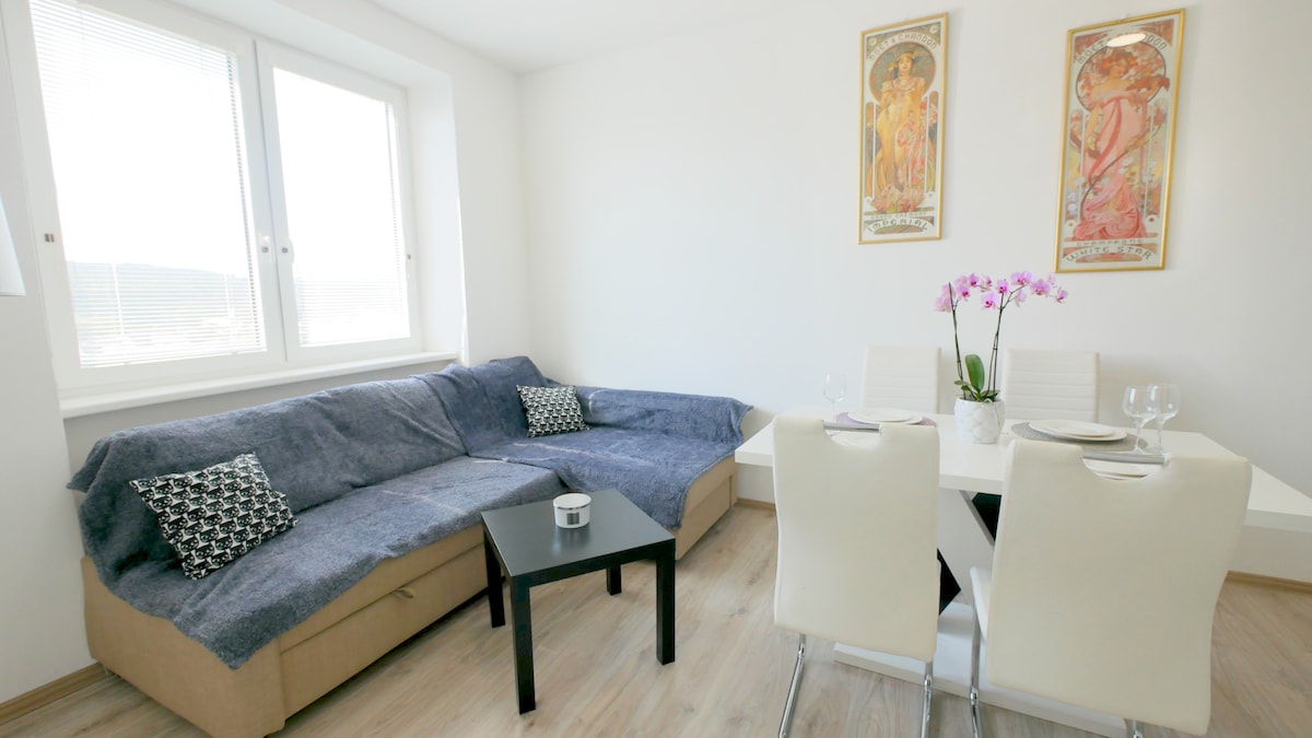 Apartment in the heart of Znojmo “Like Home” is located in Znojmo, 48 km from St. Procopio Basilica and 23 km from Vranov nad Dyjí Castle, and overlooks the inner courtyard. It offers garden views and free Wi-Fi. The apartment has 1 bedroom, living room with flat screen TV and streaming services, fully equipped kitchen with dishwasher and stove and 1 bathroom with slippers. Bed linens and towels are provided.