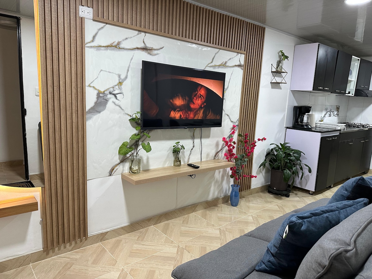 Cozy studio apartment with an ideal location! On the second floor, access by stairs, spacious and bright, near the airport, shopping centers, American Embassy, Corferias and Movistar Arena. Equipped with a kitchen, washing machine, double bed, sofa bed, internet, TV and hot water. Parking is available based on occupancy, please check before booking to confirm availability We will ask for your ID, address, and phone number to ensure a safe experience for our guests