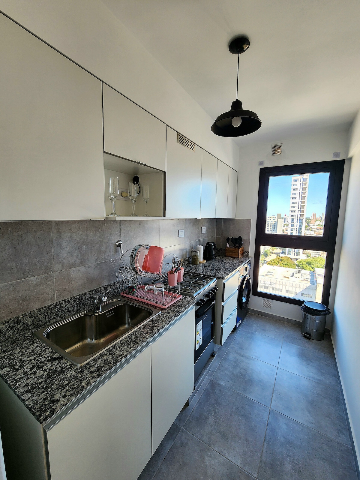 Alojamiento tranquilo y luminoso con diseño moderno, a pasos de Boulevard, Universidad, shopping, bares y peatonal. Cocina equipada, sommier queen size, placard, aire frío/calor, ropa blanca, living comedor TV, sofá, Wi-Fi de alta velocidad. Baño completo con ducha de optima presión. Balcón con vista verde al corazón de manzana. Edificio con moderno ascensor, SUM y loundry con lavarropas automático y tender.
