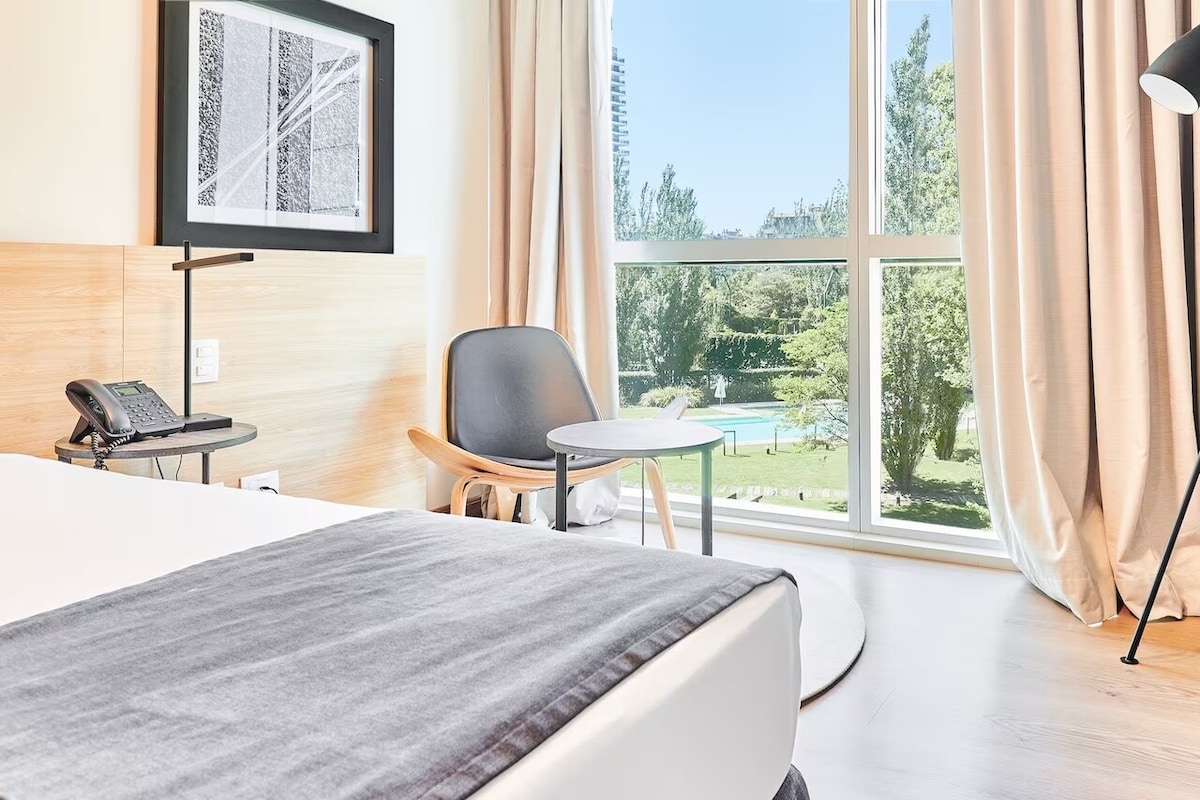 HOTEL EN CONSTRUCCION Incluye desayuno completo, gran pileta al aire libre y parque, quincho con asador, mesa de pool/ping, cocina (en el quincho), ropa blanca, toallas para la habitación y pileta, amenities, pava electrica, frigobar (bebidas con costo extra), caja fuerte, gran balcon, cochera techada, limpieza diaria de la habitación. recepción/restaurante en construcción. no habrá ruidos molestos ya que por temprada la construccion esta en pausa pero recordar hay servicios limitados