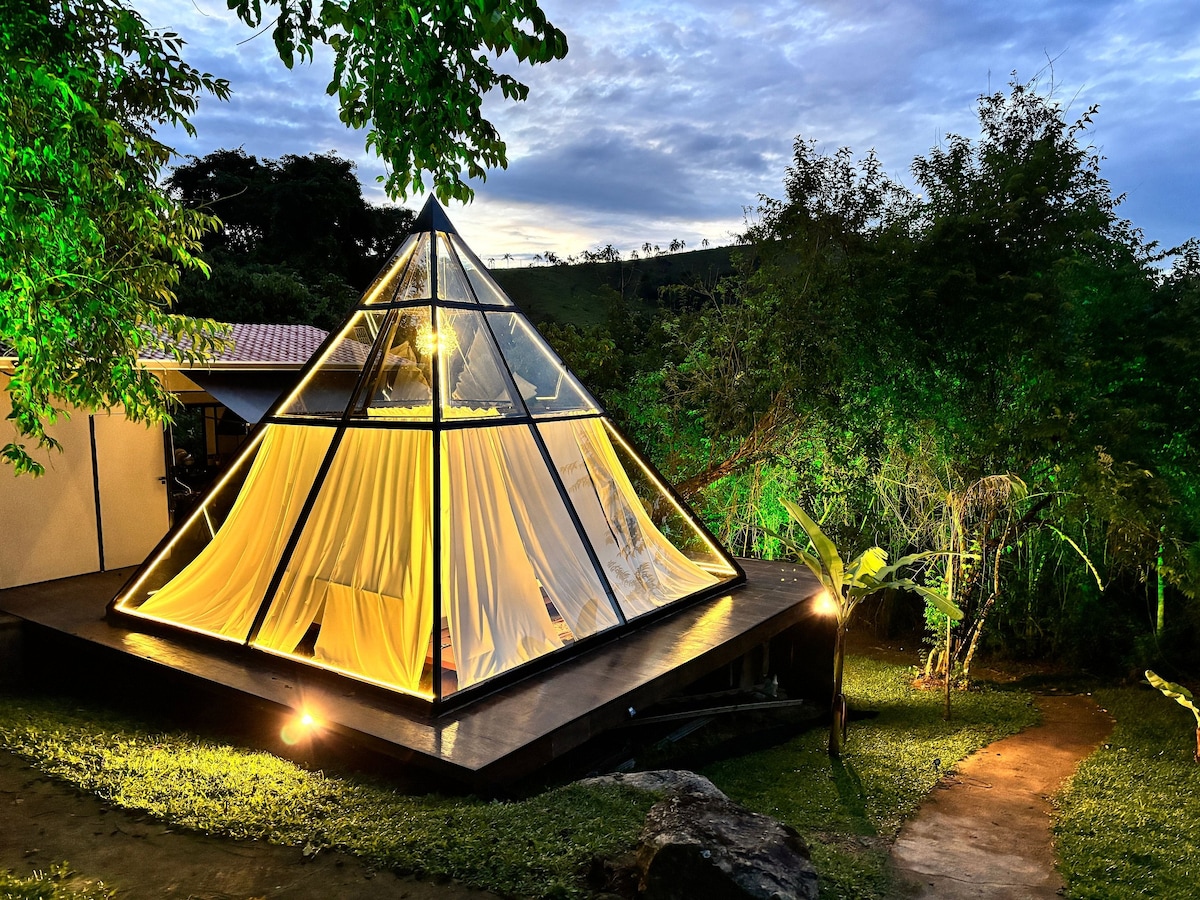 Inaugurada 10/02/26 Mesmo grupo @chalesunset e @cupulesantorini Reservando duas diárias você ganha 10% de desconto. Check-in a partir das 14h e chek-out até as 11h Café da manhã gourmet especial, incluido em todas as diárias. Veja mais fotos em nosso Insta @piramidevidro