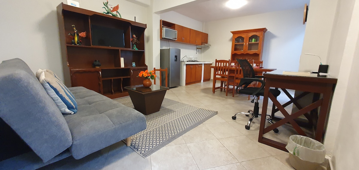 A safe apartment on the ground floor, it has a bedroom with two double beds, a full bathroom, an equipped kitchen and a living room. It has the perfect location to get to know the entire tourist area of the city, one block away. It's a very safe place, you can trust us when staying with us. I will always give you clean linens and towels, as well as purified water to drink. The water pressure is very good. Good Internet signal all day.