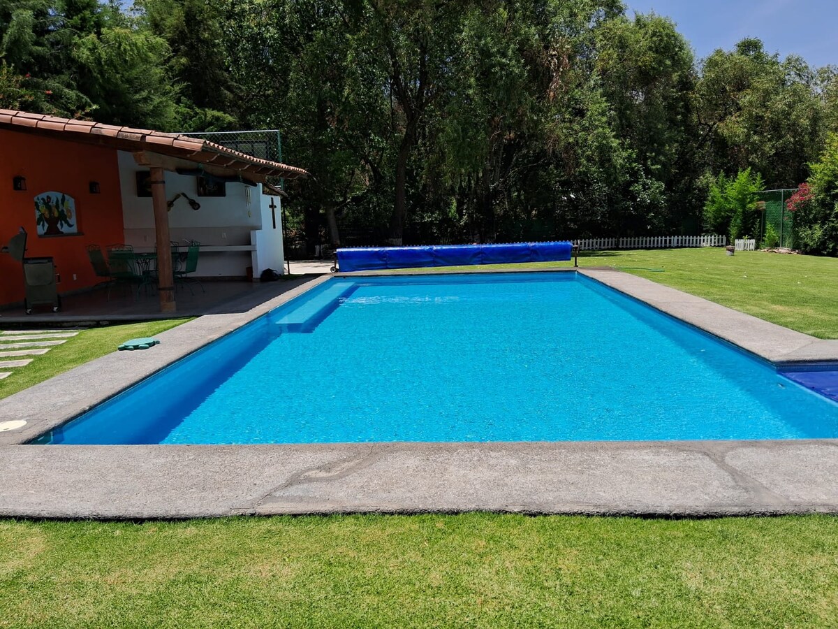 Disconnect from the routine in this unique and relaxing accommodation. A beautiful little villa, with a huge garden, private terrace, view of the lagoon and the flowers field, fireplace, patio with grill and wood oven. Located 10 minutes from Valle de Bravo in a beautiful area, full of nature and tranquility. Beautiful little place for you, for couples, friends or family and pet. The best option for you, book for a month, great for home office, per week or weekend.
