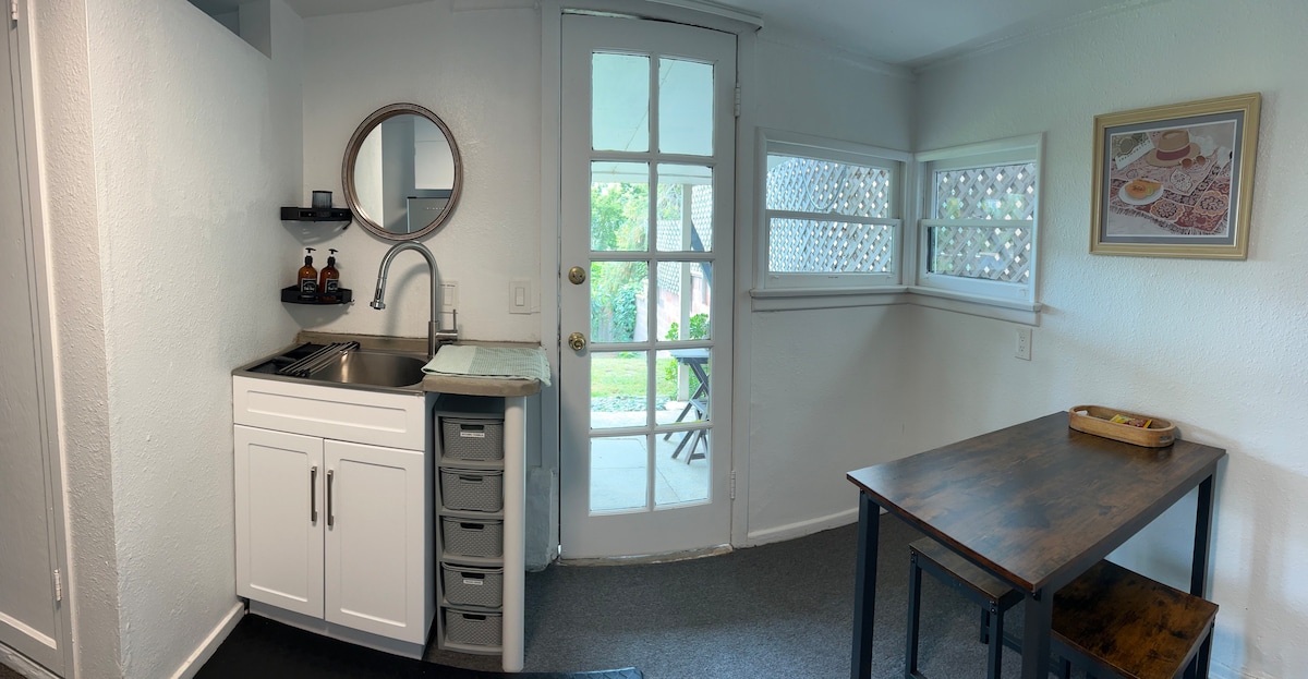 Modern/high end finishes, lush landscaping/quiet/walk to market, restaurants, coffee, boutiques. Close to beaches/Venice/museums. No shared walls, private patios. Studio on 2nd floor 2 blks public trans, trendy & foodie cafes/restaurants (Layla Bagels, Ghisallo, Local, Thyme, Love Coffee), laundry, grocer. WiFi, smart TV, micro, fridge & coffee/tea included, no kitchen sink, A/C SM bus license 235322. We live in front house. Max 2 guests. 3 night min for major holidays. Copy of gov’t ID req’d