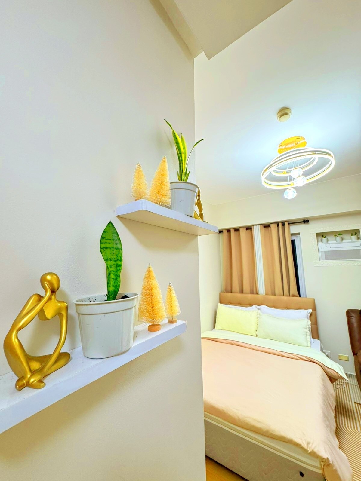 Escape to the intimate serenity of Skyloft at SMDC Trees Residences, a carefully curated urban haven. Experience a well-deserved retreat in this elegantly designed studio suite. The unique and aesthetic decor, complete with a bar counter, a game console, and a loft bed beside a panoramic window, provides the perfect setting for uninterrupted stargazing. Reconnect with your partner or share this tranquil haven with a dear friend. Book now and make memories! ♥️🌥️