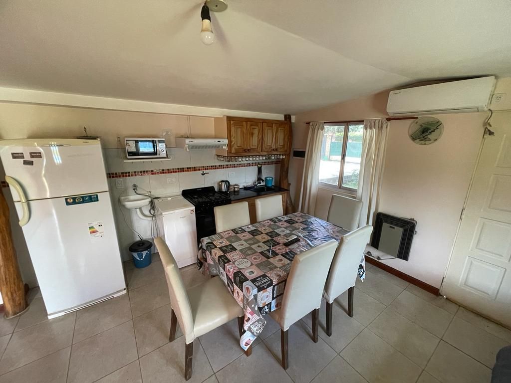 Acogedor departamento totalmente equipado. Cuenta con dormitorio con ropa de cama, baño privado con agua caliente y toallas, living comedor amplio con sofá cama y cocina integrada con lo esencial. Dispone de aire acondicionado en todos los ambientes y estacionamiento propio. Su patio con asador, bajo un caldén centenario, ofrece un entorno único y natural. Ubicación accesible, ideal para descanso o trabajo.