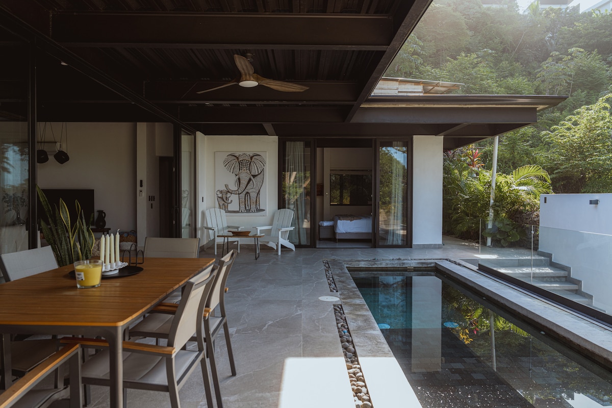 Staying at Casa Celeste feels like you are spending your days in your own beach front private nature park. A natural corridor for many of Costa Rica’s wildlife. Listening to the sounds of the waves all day is a truly amazing experience. Enjoy your private pool, outdoor bathtub & shower, BBQ, yoga deck, hammocks, outdoor seating & entertaining area. Ocean facing open modern living concept. Daily housekeeping & personal concierge services provided. We are approximate 1100 meters from Santa Teresa