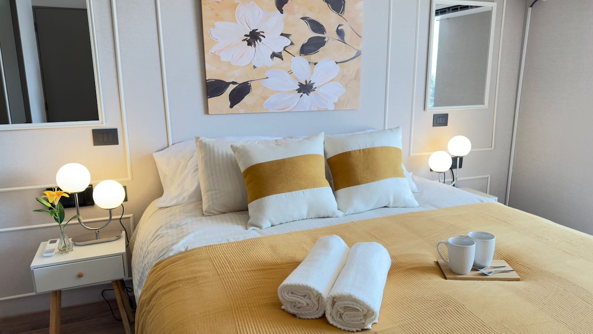 Apartamento nuevo para estrenar, perfecto para hasta 3 huéspedes. Cuenta con un dormitorio principal equipado con una cama doble y un moderno baño completo. La cocina, abierta al living, está equipada con lo necesario para preparar comidas y compartir momentos agradables. El salón incluye un cómodo sofá (ideal para el tercer huésped) y un televisor disponible para el entretenimiento. El diseño es moderno y minimalista, con detalles cálidos y terminaciones de calidad.