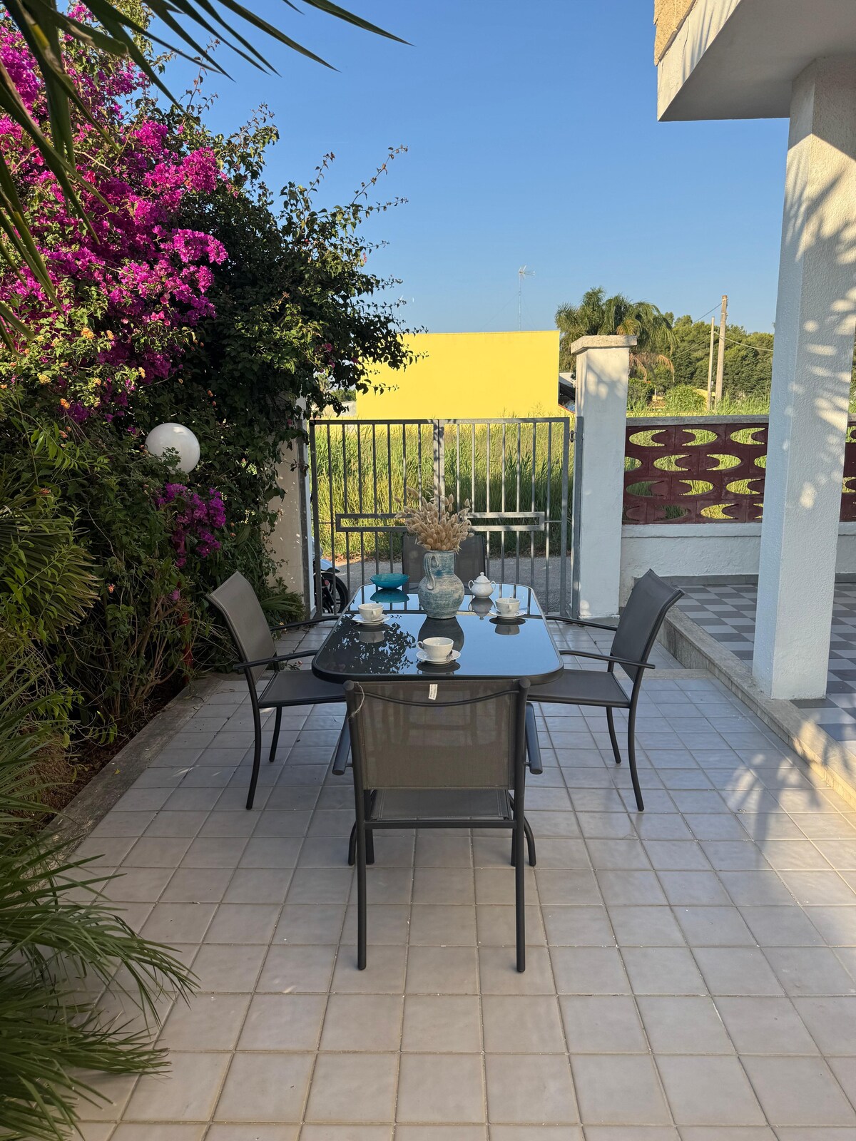 A small paradise in Salento, adjacent to Porto Cesareo, surrounded by typical dry stone walls, inside you will find olive trees, pines, majestic prickly pears and special Mediterranean plants where you can spend your stay. In front of the property, less than 100 meters of state property used as a lawn that in spring is colored with wonderful blooms, is the wonderful Ionian Sea, which you can admire without interference.