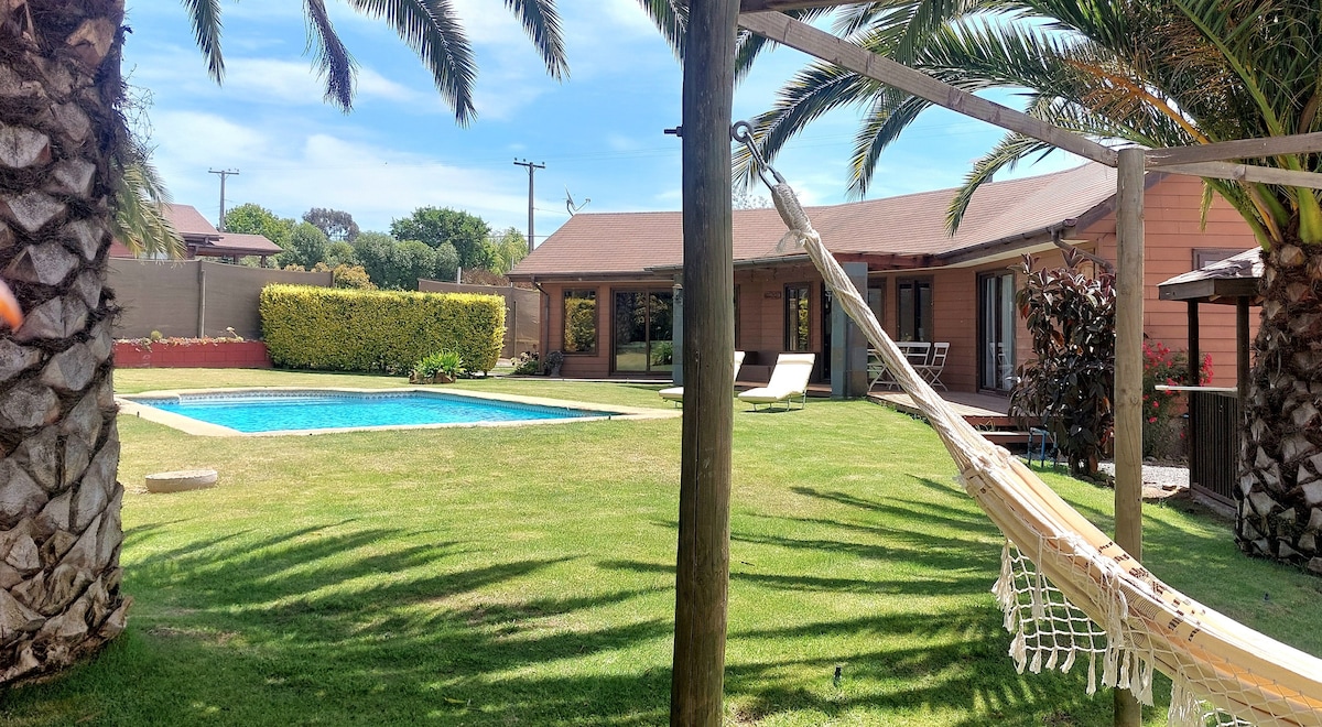 Cabaña tricao unique in its style. Access to playa at 7 minutes, view to the vineyard Felipe Edwards (the closest to the sea in South America) Cuba de madera, Bosca and quincho Integrated. 20min. to Santo Domingo. Close to Tricao Park and Santo Domingo's point for wave and surfing windsurfing. Two hours from Santiago come and enjoy calm, bonitos campo and desolada playa. If it rains, it is advisable to come in a 4x4