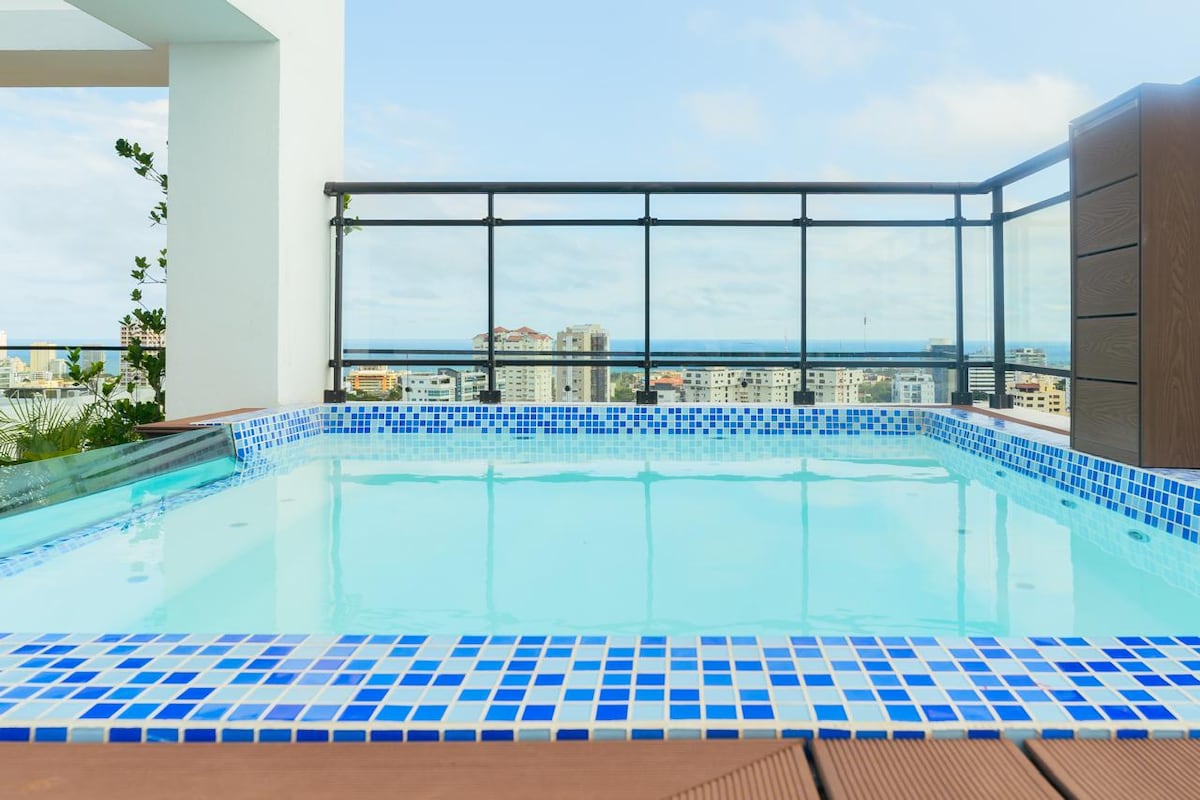 Modern apartment in the heart of Santo Domingo Located on the 6th floor (West Building), this exclusive studio offers a spectacular view of the Caribbean Sea and the Malecón, the famous waterfront boulevard ✔ King size bed for maximum comfort ✔ Air conditioning ✔ High-speed fiber optic WiFi (CLARO) ✔ Private condominium with 24/7 security ✔ Private parking ✔ Elevator and emergency electric generator Perfect for a comfortable and pleasant stay in the city.