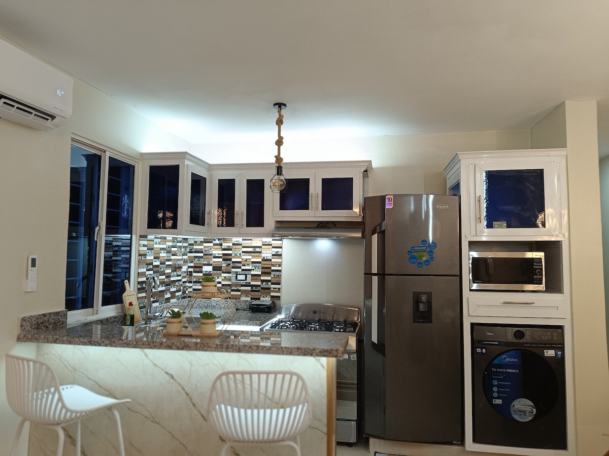 Modern and cozy 1st floor apartment in Santo Domingo Norte, Jacobo Majluta Ave. Easy access (no stairs), perfect for couples, families, or business travelers. Enjoy a clean and comfortable space with WiFi, A/C, Smart TV, and a fully equipped kitchen. Convenient location near supermarkets, restaurants, and main roads. Great value for short or long stays. Book now! Why you will love it • 1st floor easy access • Comfortable and relaxing • Excellent value for your stay Ideal for short and long stays