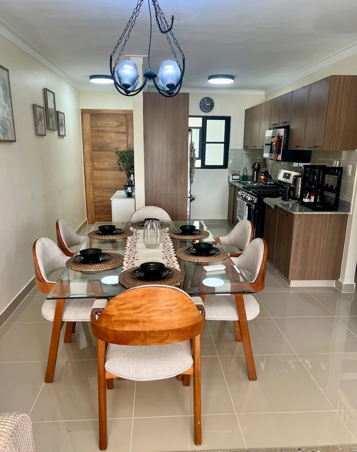 Moderno apartamento de 3 habitaciones totalmente equipado, ideal para familias o grupos. Cuenta con una amplia terraza privada con área de BBQ perfecta para compartir, además de acceso a piscina y gimnasio en el residencial. Dispone de cocina completa, sala cómoda, comedor y espacios diseñados para una estadía relajante. Ubicación tranquila y segura, con todo lo necesario para disfrutar unos días de descanso con comodidad.
