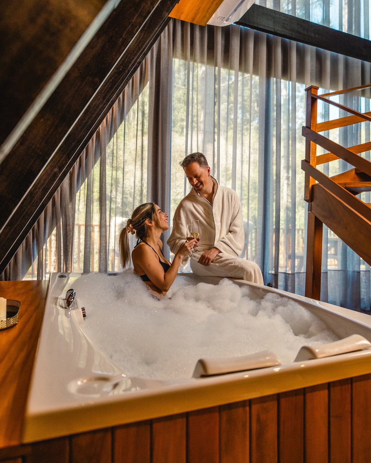 Immersed in the native forest of the Parador La Invernada site in an area of 7 ha, just 10 minutes from the center of São Francisco de Paula, guaranteeing, in addition to moments of disconnection, a lot of coziness, exclusivity and sophistication. Finely furnished, it features a hot tub, gas shower, king-size bed, heater, full kitchen, Uruguayan grill, wood-burning pizza oven, air-conditioning, TV, deck with sun loungers, fire pit, hammock and swing. High-quality linens and bathrobes.