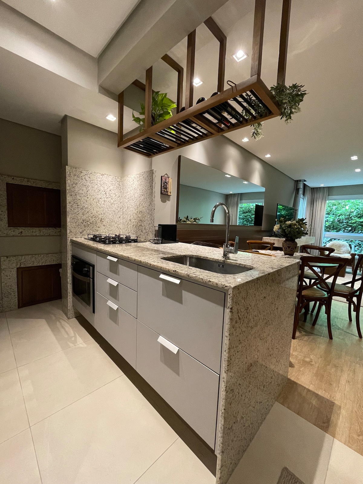 Magnificent apartment in an exclusive condominium, a 5-minute walk from the famous covered street. Come and experience unforgettable moments in a charming apartment with complete infrastructure, close to nature, with a fireplace, hot and cold air-conditioning, exactly the comfort you deserve to enjoy the best of Serra Gaucha. Your small pet is also welcome!