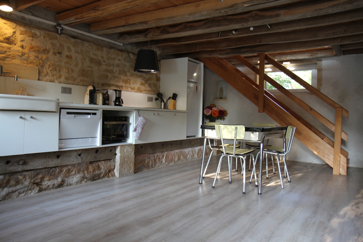 Lovely fully equipped loft with free parking (in the courtyard of the house). An automatic gate closes the courtyard with a beep provided upon arrival and throughout the stay. Come and enjoy the calm of the countryside 15 km from Beaune and 25 km from Chalon-sur-Saône. Bike rides, cellar tours and Burgundian terroir will be on the agenda. Ideal for relaxation, this cottage offers all the advantages of the countryside (chicken coop included!) with the proximity of Burgundian towns.