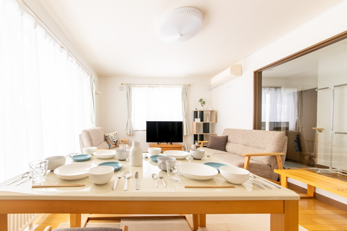 An entire private house with free parking, a 2-minute walk from the subway. Central Sapporo is about 10 minutes away without transfers, in a quiet residential area. This is a private 2-bedroom unit (84.32㎡) within a two-family house. known to accommodate up to 5 guests with air conditioning, Wi-Fi, and a work desk. Otaru is about 35 minutes away and New Chitose Airport about 50 minutes by car. Smoking is strictly prohibited inside the house, on the property, and in the surrounding area.