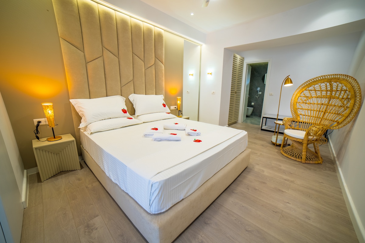 Beachfront luxury apartment located in the heart of Saranda ,Albania. With its central location, you'll have easy access to all the amenities you need for a memorable vacation, including restaurants, cafes, and shops. The apartment is beautifully designed and fully equipped with everything you need to make yourself at home. You'll find a comfortable living room, a fully equipped kitchen, a relaxing bathroom and a spacious balcony where you can soak up the stunning views of the sea and the city.