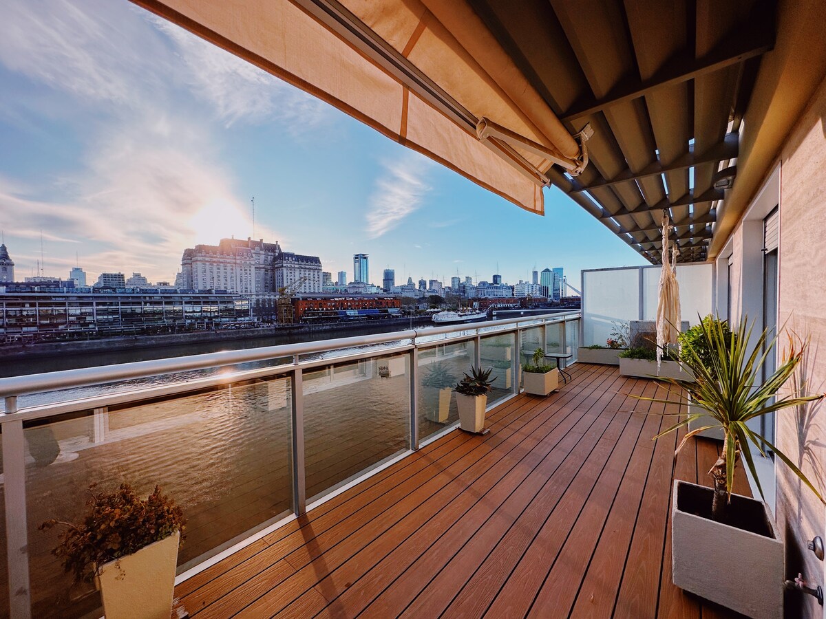 Minimalistic studio located in a hotel flat will offer you the best experience. Location: City center next to touristic points like Puerto Madero, La Boca, Casa Rosada, Palermo. Mobility: Close to bus stops and subways, free bikes in the entry. Views: Woman's bridge and river plate, also you'll see the sunrise and sunset. Amenities: Wi-Fi (Private connection) Meetings room and a small cinema Sauna (dry and wet), Jacuzzi and a massage table (separate service) Complete Gym Swimming pool