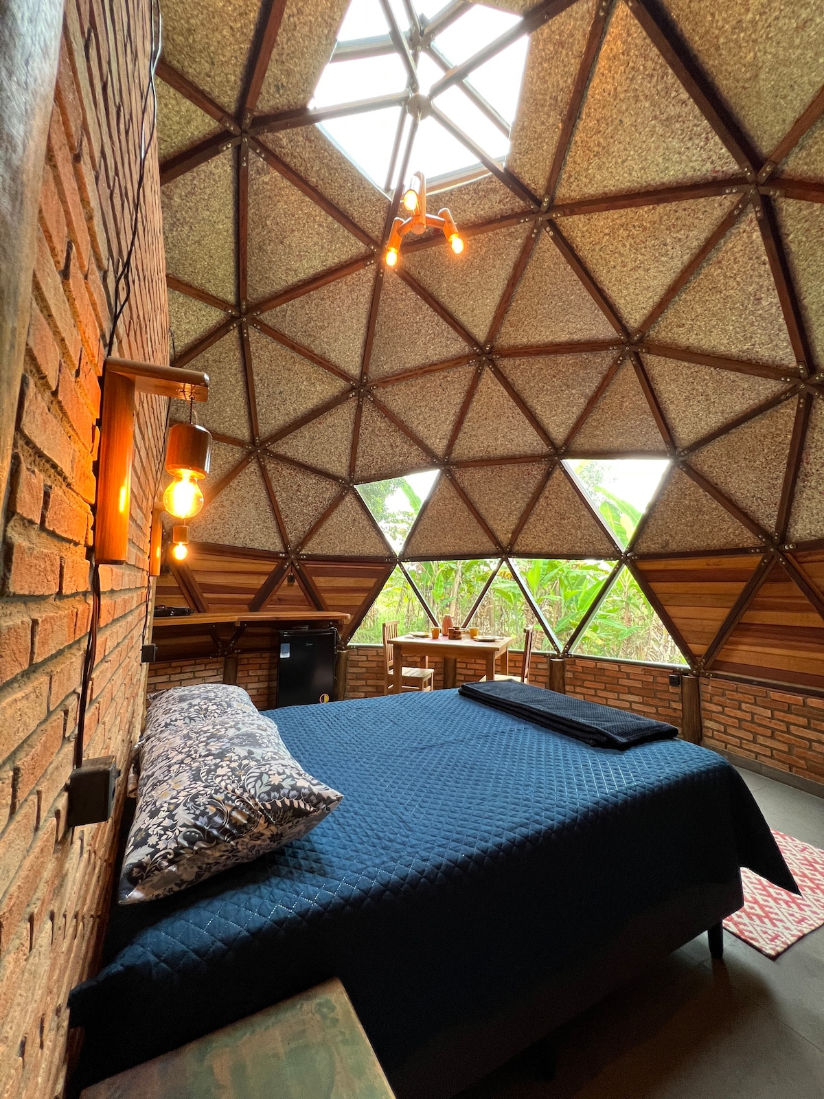 The Surya Geodesic Dome is located in Saramandala, a privileged place in a quiet neighborhood in a rural area. Great for relaxing, resting and connecting with nature. Possibility of working from home. Option for accommodation on weekends/holidays and seasons. Come and have a unique experience in a building that is in tune with Nature, representing Sacred Geometry and favouring the harmonious flow of energy. Only those who have been in a Dome know what I'm talking about.
