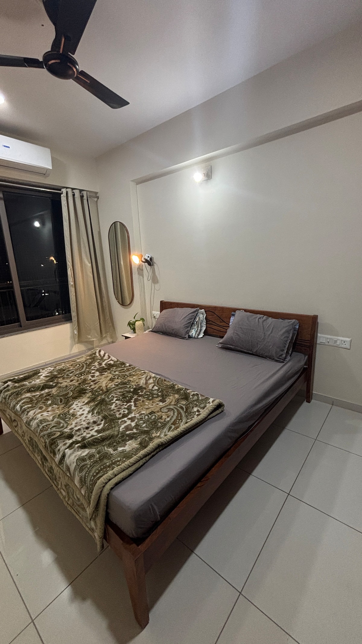 This stylish place to stay is perfect for group trips. It is a 2bhk entire separate flat We have 42’’ led tv ,Washing Machine , Fridge , Chimney ,geyser in both washroom , AC in both rooms and 1 Ac in hall, 2 beds 2 cabinets dining table and kitchen with complete utensils.