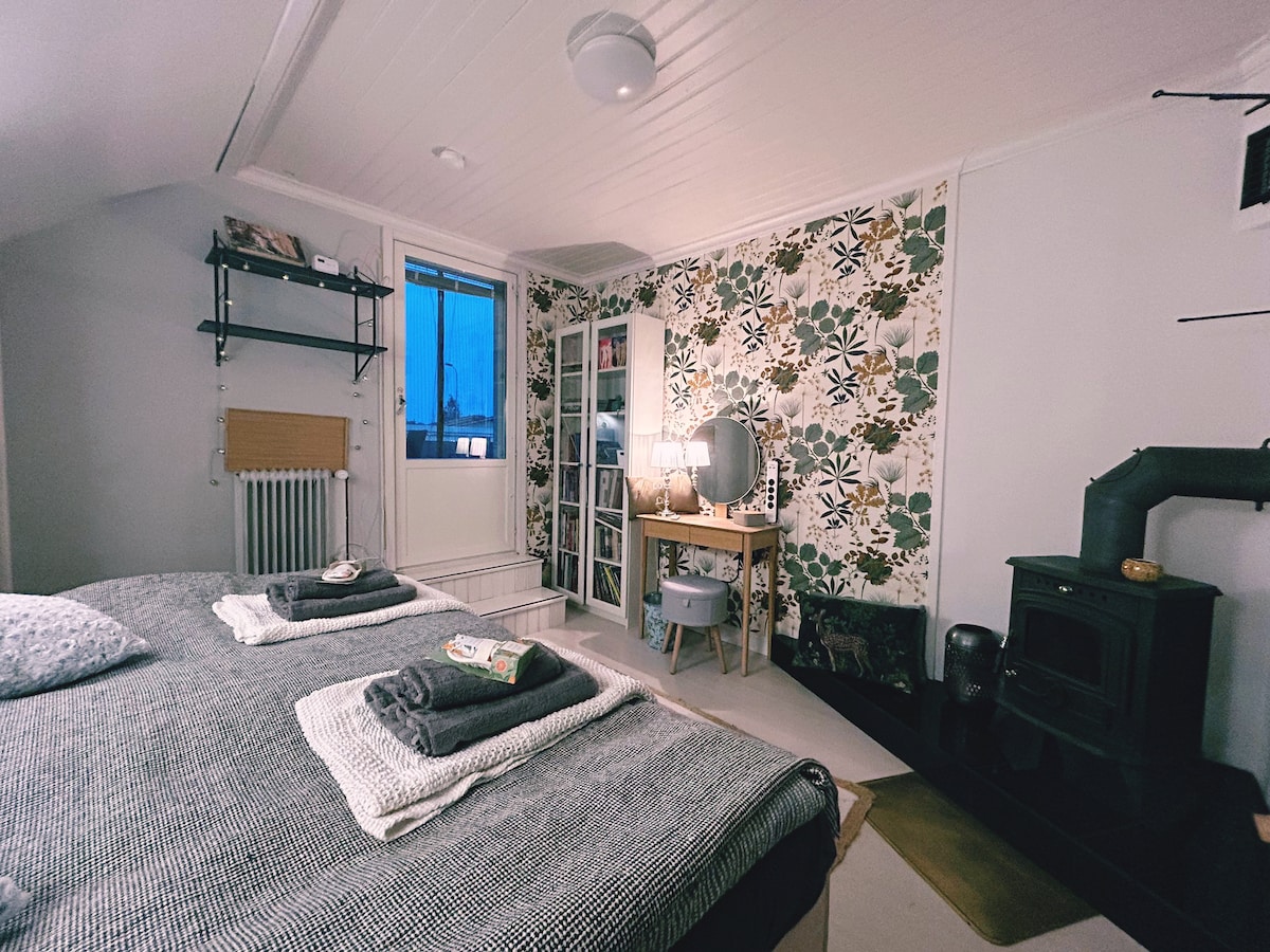 The apartment is located in a traditional wooden house that exudes old Turku. The accommodation is flexible, everything you need is at your disposal. The kitchen is fully equipped and the bathroom has a washing machine. The house also provides bed linen and towels for its visitors. Köydenpunojankatu has good transport connections and is close to Logomo, among other things. A base for both business and leisure travel. This place offers a personalized and authentic city experience. For summer heat, the apartment has a cooling machine.