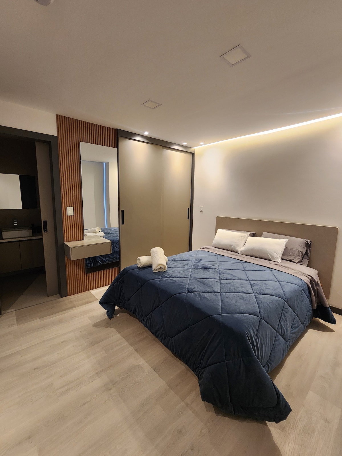 Disfruta de un espacio con sala, comedor, cocina, lavandería, un dormitorio y un baño completo. Además, incluye un práctico sofá cama para mayor comodidad. Dispondrás de parqueadero privado dentro de las instalaciones. Con una hermosa vista a la ciudad; a pocos minutos del centro histórico y cerca de restaurantes, tiendas y parques para que explores a gusto. La cocina está equipada con todo lo necesario y, por supuesto, contarás con conexión WiFi para mantenerte siempre en contacto.