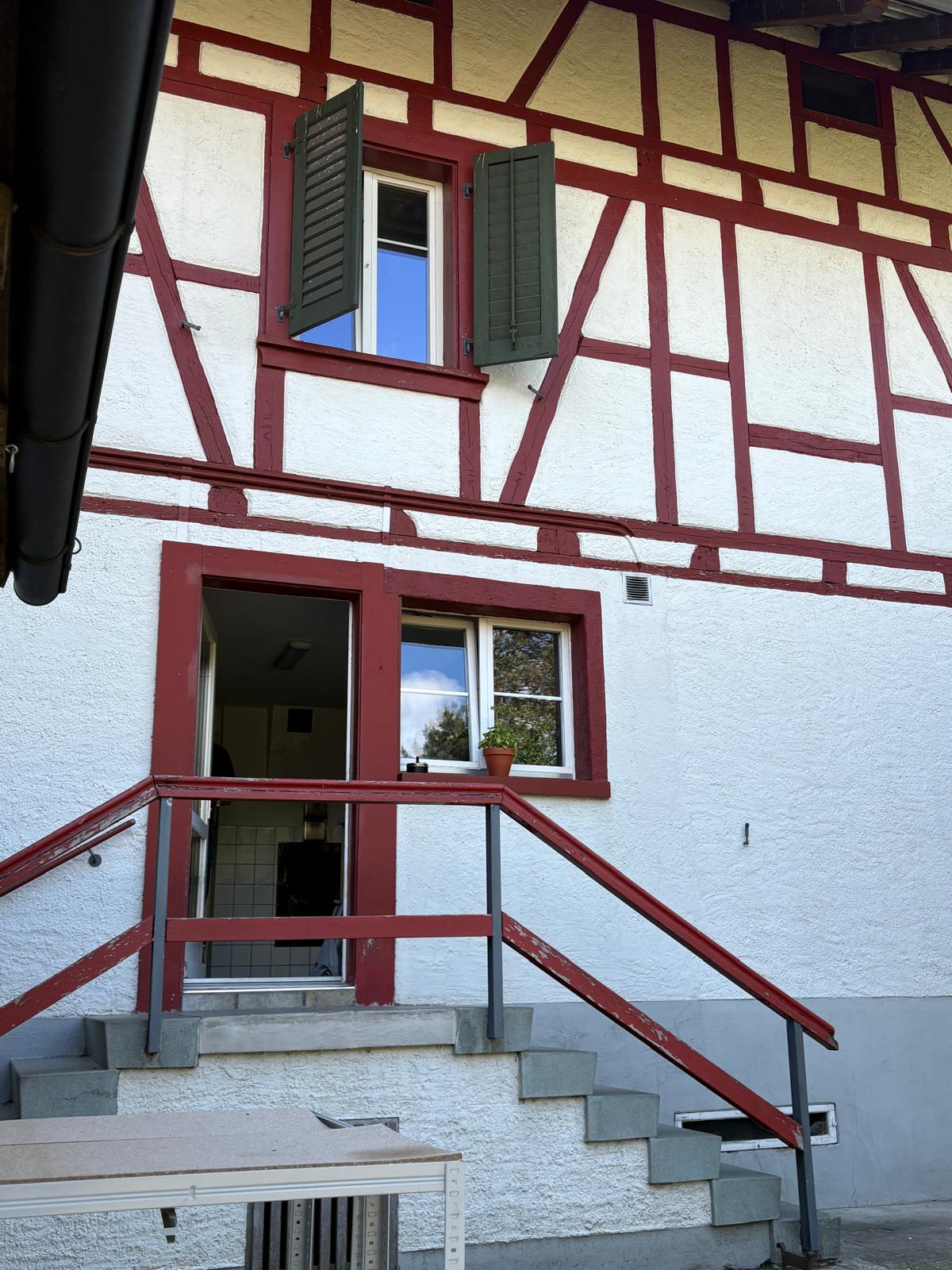 Farmhouse in Siblingen (SH) offers ideal conditions for fitters, project workers or craftsmen's teams on approx. 100 m² of living space. Features: • 4 separate rooms – ideal for up to 8 people • 2 bathrooms, one with bathtub • Washer & dryer available • Kitchen with dining area that can also be used as a living room • Private garden for your own use • 3 outdoor parking spaces right by the house • Detached house – no direct neighbors