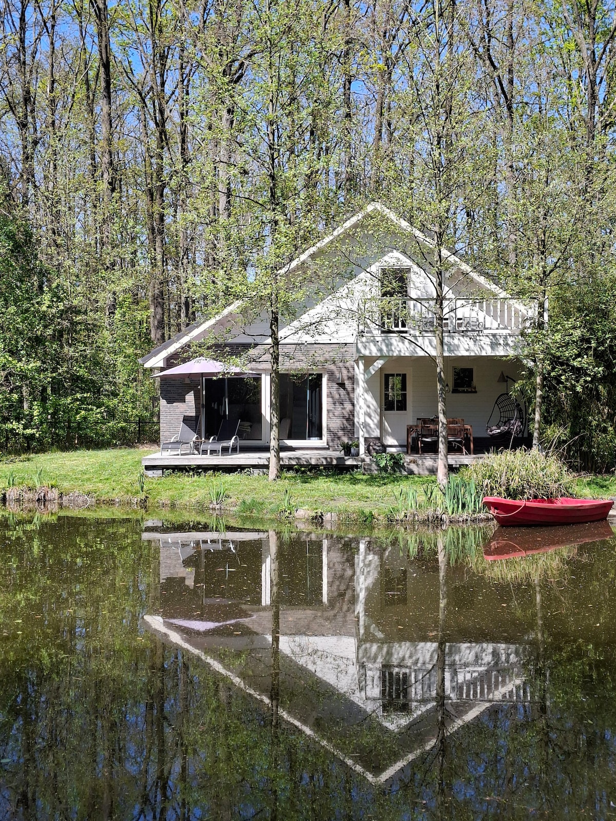Unique chalet in the middle of the woods, close to numerous hiking and cycling trails. This chalet is a gem for those who love peace and quiet. The domain is fully fenced. You can park the car inside the fence. The chalet has utilities, water, electricity and central heating and has a unique view of the pond. You can spot rare birds such as the kingfisher. There is Wi-Fi and a smart TV. The coffee maker is a Senseo. In the neighborhood, there are eateries and supermarkets.